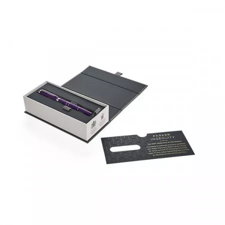 5TH Parker Ingenuity Deluxe Blue Violet CT Slim, hrot F. Tělo a víčko z eloxovaného hliníku, zdobné prvky na těle a úchopové části vytvořené laserem a leptáním. V kombinaci s doplňky pokovenými chromem.