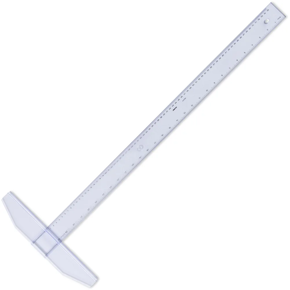 Školní příložník 60 cm • vyrobeno z průhledného polystyrenu • stupnice v mm a palcích • s otvorem pro čep