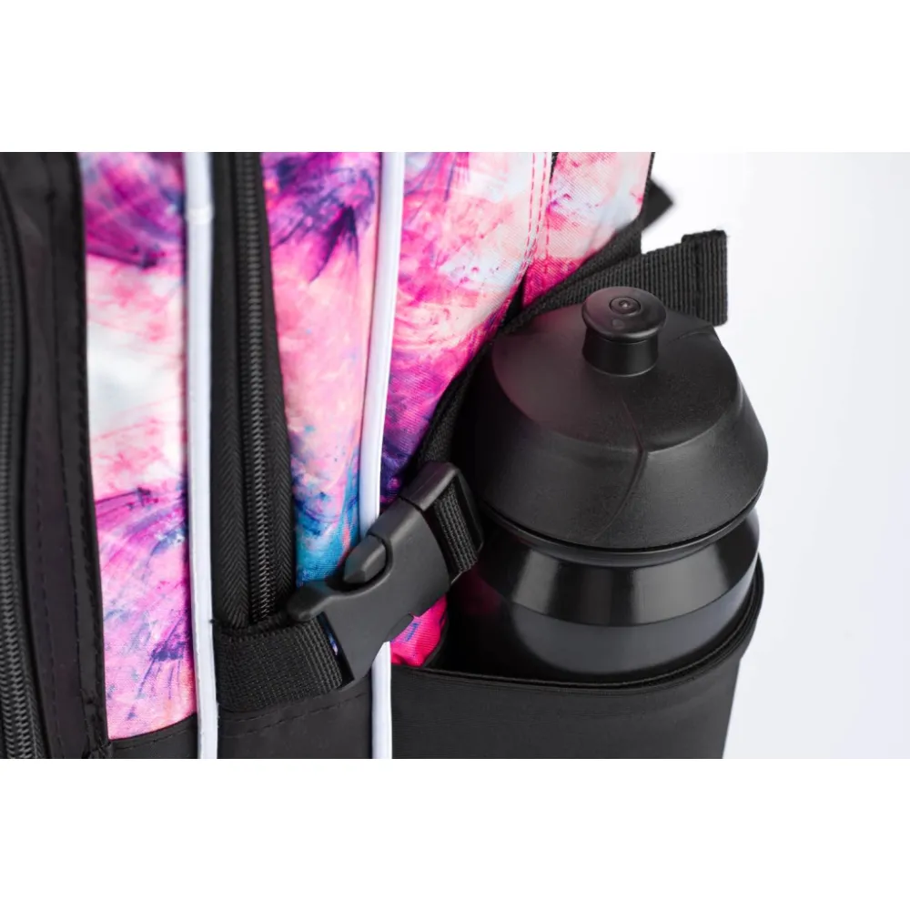 Tříkomorový dívčí batoh Cubic Abstract ve fialovo-růžovém barevném provedení se saténovými detaily. Batoh je vhodný již od 3. třídy ZŠ.