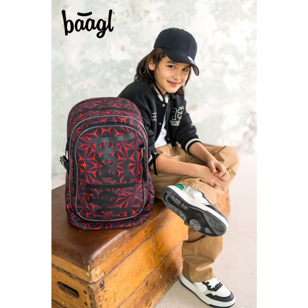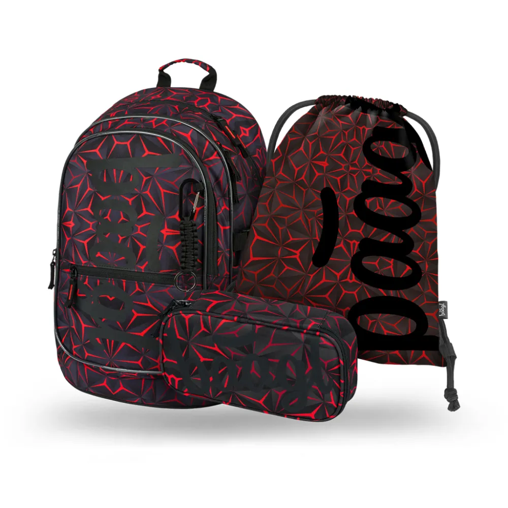 BAAGL 3 SET Core Red Polygon: batoh, penál, sáček