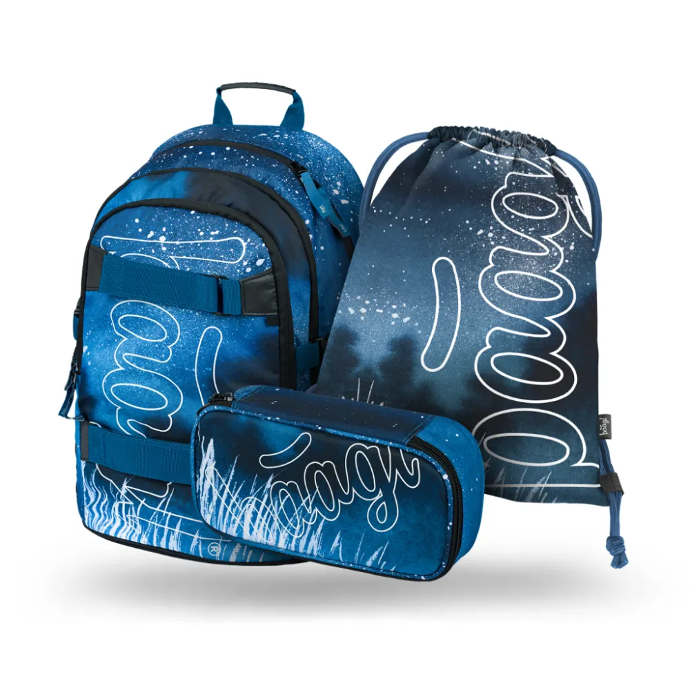 Detailní popis: BAAGL 3 SET Skate Steel: batoh, penál, sáček
