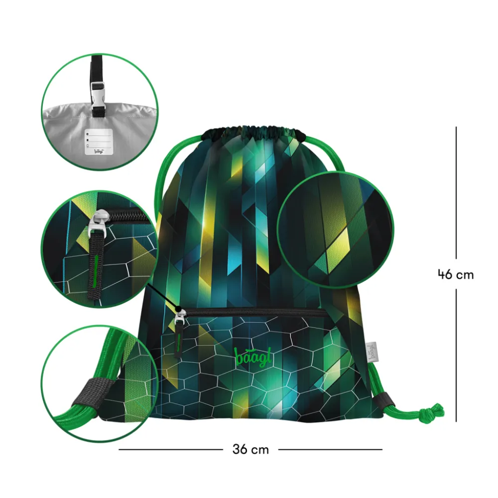 • Sáček je vybaven karabinkou díky, které ho lze připevnit na aktovku.