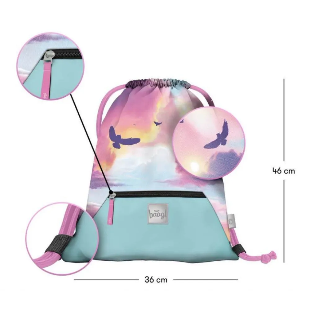 • Sáček je vyroben z pevného omyvatelného materiálu a v jeho dolní části je umístěna praktická kapsa na zip.