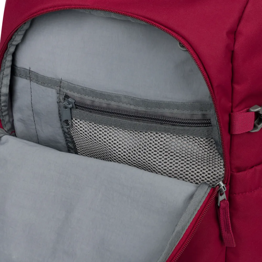 • Součástí nadčasového designu jsou praktické detaily, jako integrovaná kapsa na notebook a brýle, popruh na uchycení k zavazadlu či karabina na klíče.