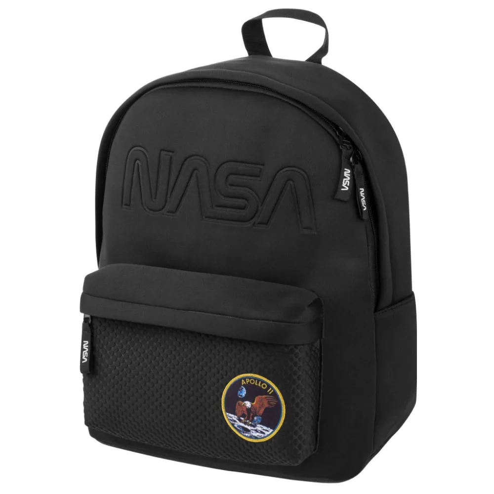 • Černý batoh z neoprenového materiálu pro volný čas s decentním logem NASA a tématickou nášivkou.