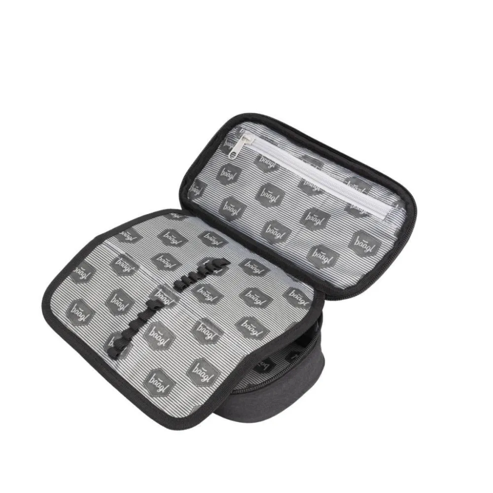 • Pevný penál na zip s dvojitou výklopnou chlopní a s černým logem Baagl.