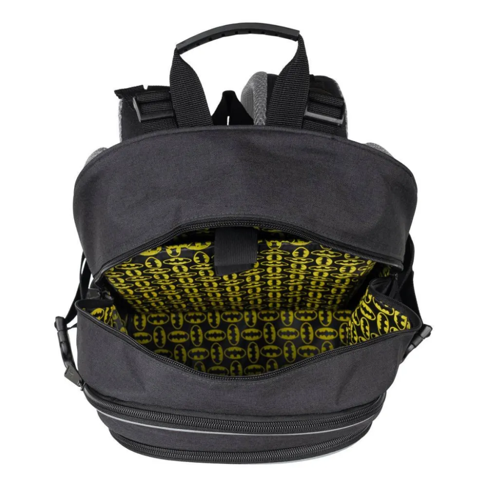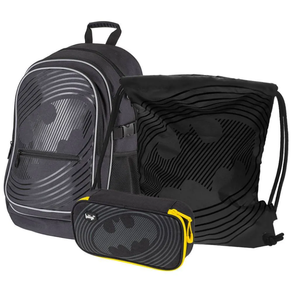 • Školní batoh Batman s potiskem s ikonickým motivem komiksového hrdiny, vhodný od 3. třídy 1. stupně ZŠ a také pro 2. stupeň ZŠ. Batoh byl úspěšně testován v ITC Zlín.