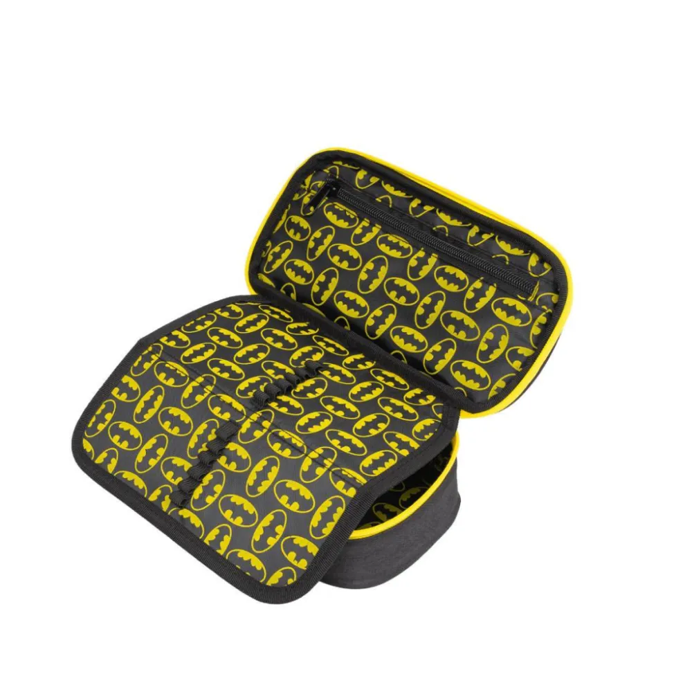 • Pevný penál na zip s dvojitou výklopnou chlopní a s motivem Batmana.