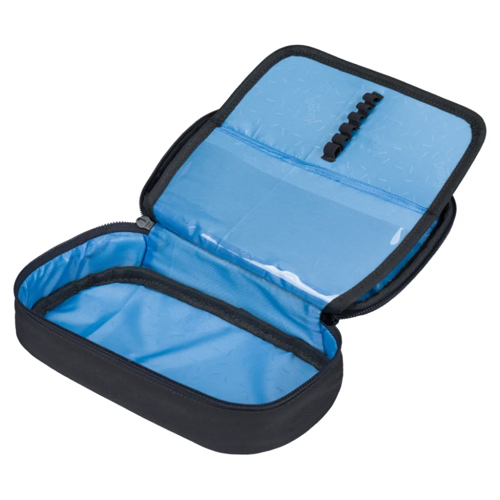 • Kompaktní penál na zip s prostornou hlavní komorou a dvojitou výklopnou chlopní nabízí dostatek prostoru pro psací potřeby i drobnosti.