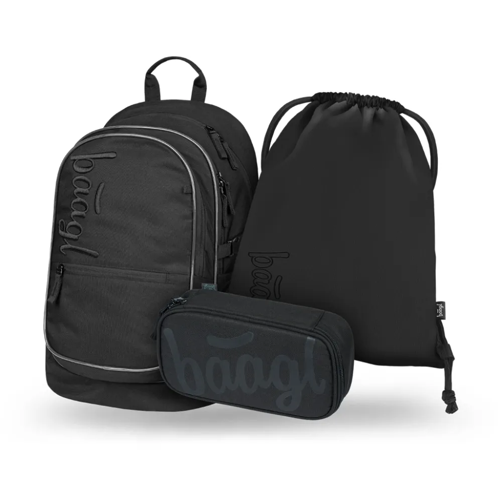 Detailní popis: BAAGL SET 3 Core Uni černá: batoh, penál, sáček