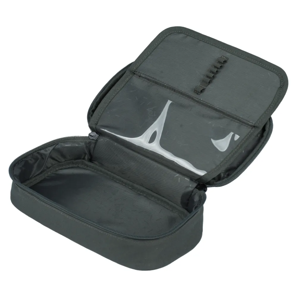 • Kompaktní penál na zip s prostornou hlavní komorou a dvojitou výklopnou chlopní nabízí dostatek prostoru pro psací potřeby i drobnosti.