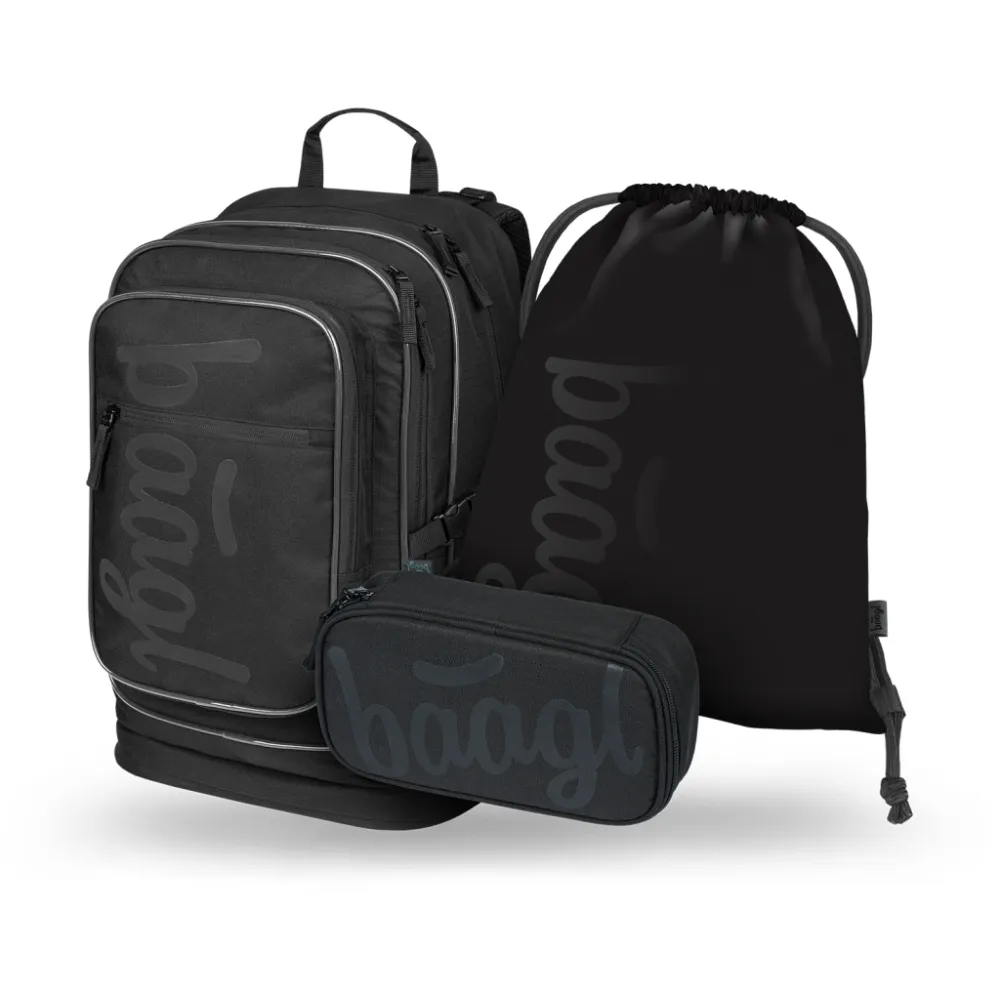 Detailní popis: BAAGL SET 3 Cubic Uni černá: batoh, penál, sáček