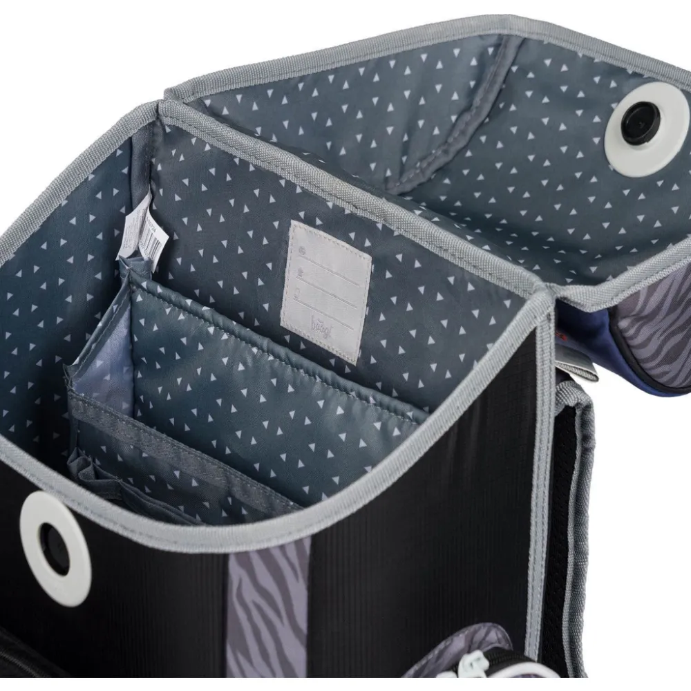 • Uvnitř aktovky je průhledná kapsa s rozvrhem a vnitřní organizér umožňující rovnoměrné rozložení hmotnosti.