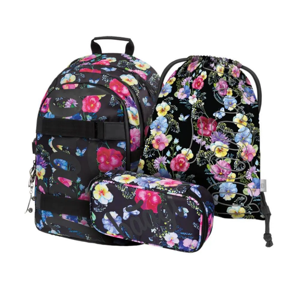 Detailní popis: BAAGL SET 3 Skate Flowers: batoh, penál a sáček