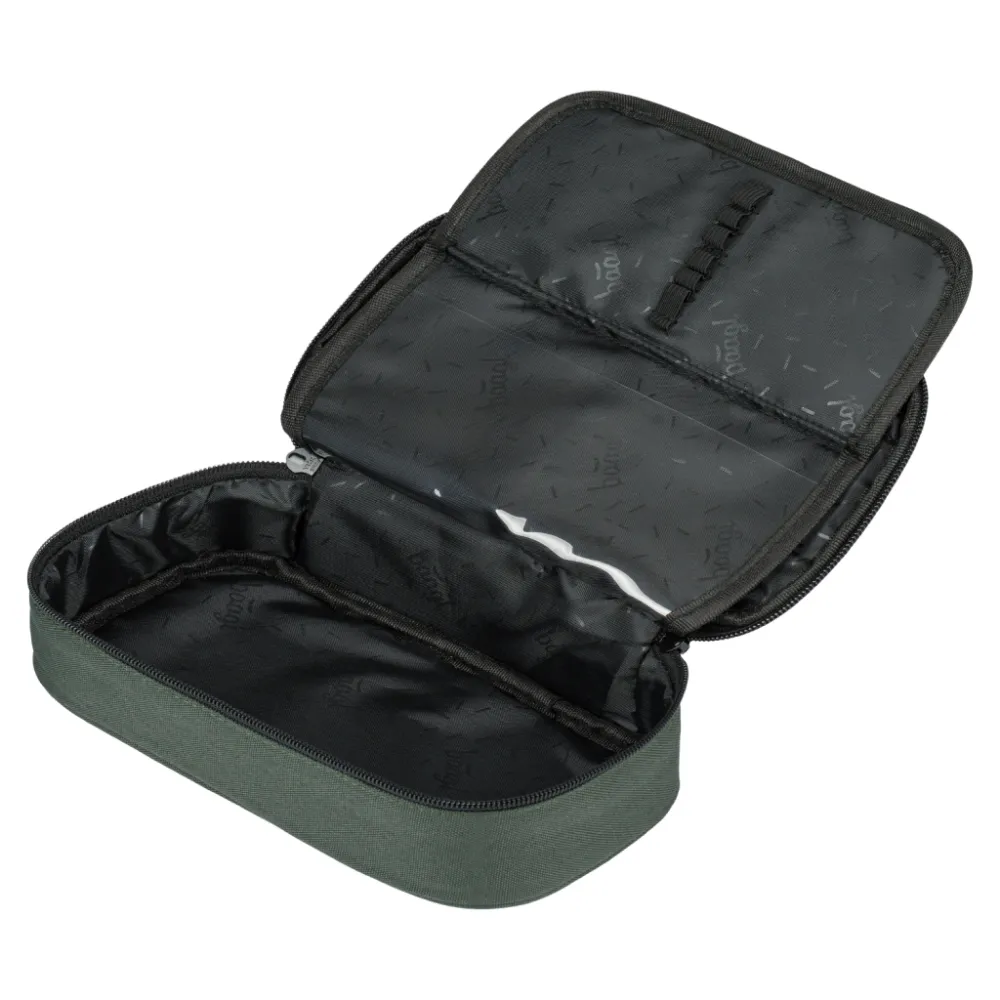 • Kompaktní penál na zip s prostornou hlavní komorou a dvojitou výklopnou chlopní nabízí dostatek prostoru pro psací potřeby i drobnosti.