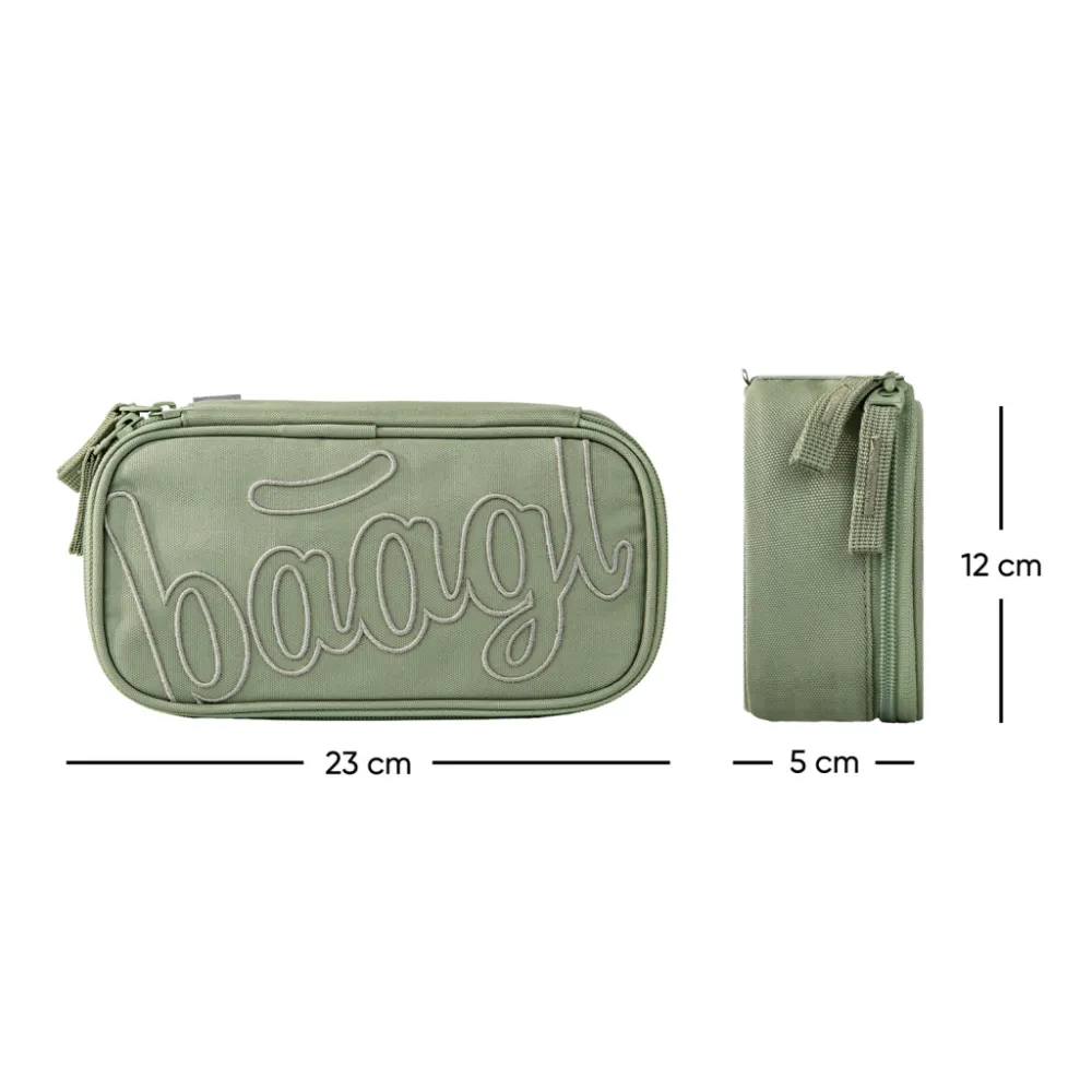 • Kompaktní penál na zip s prostornou hlavní komorou a dvojitou výklopnou chlopní nabízí dostatek prostoru pro psací potřeby i drobnosti.