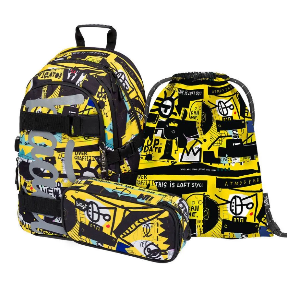 Detailní popis: BAAGL SET 3 Skate Street Art: batoh, penál, sáček