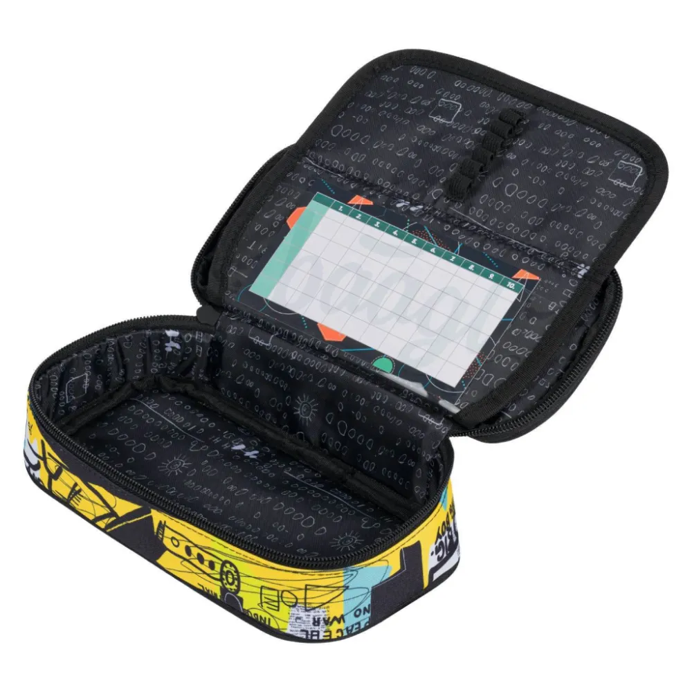 • Pevný školní penál s výklopnou vnitřní přepážkou.