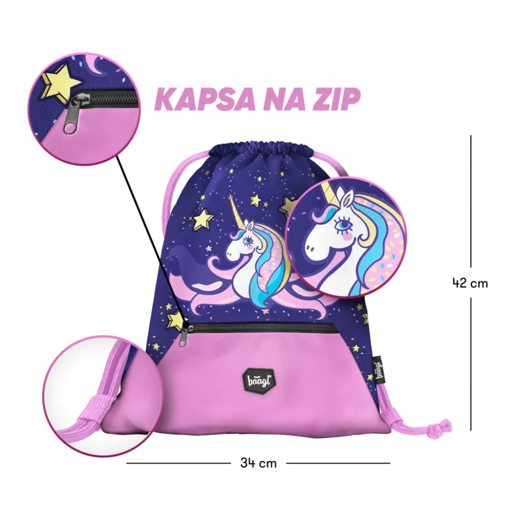 Detailní popis: BAAGL SET 3 Unicorn: aktovka, penál, sáček