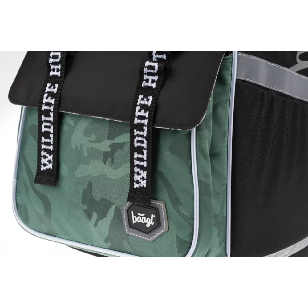 • Ergonomická školní aktovka s vyztuženým tělem, vnitřním organizérem a třemi oddělenými kapsami.