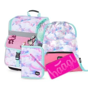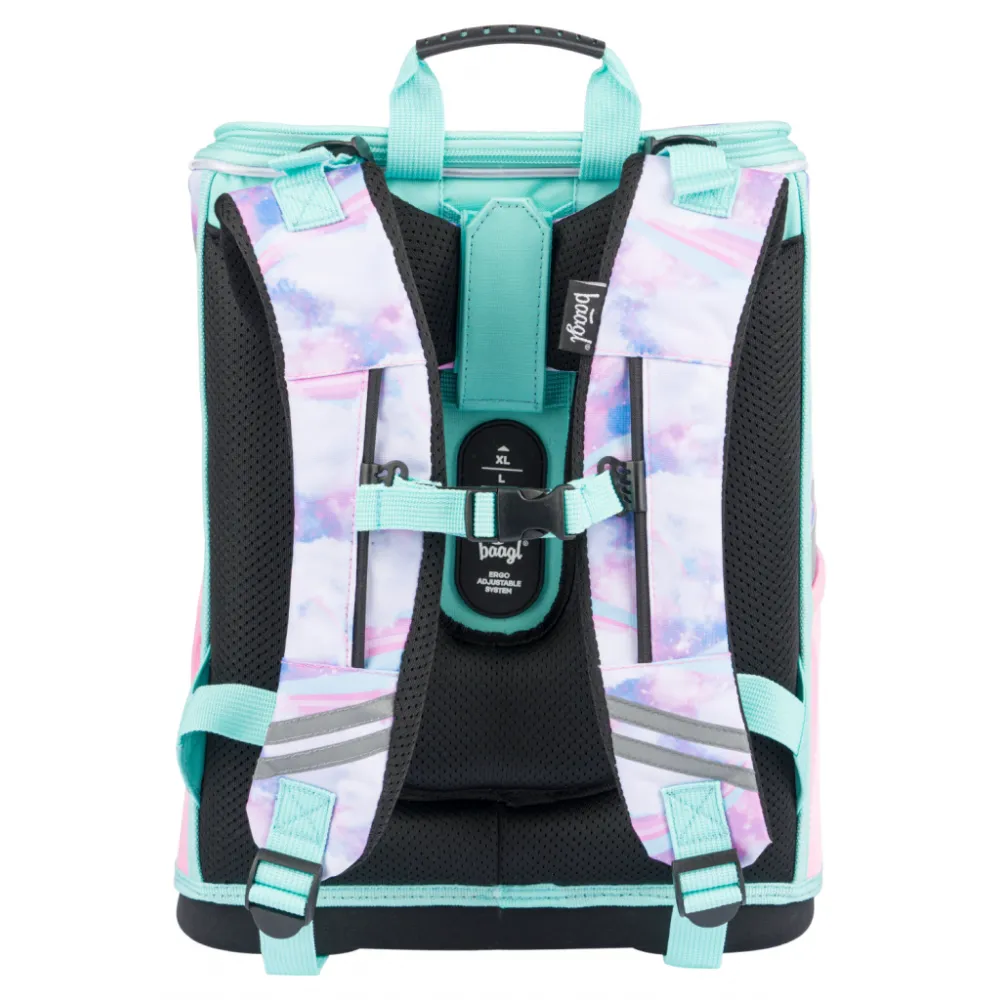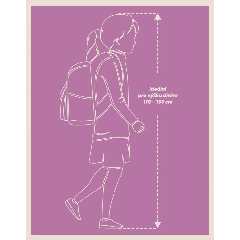 • Ergonomická školní aktovka s vyztuženým tělem, vnitřním organizérem a třemi oddělenými kapsami.