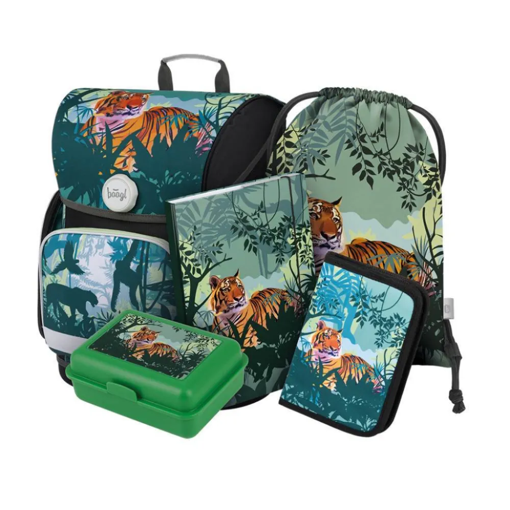 Detailní popis: BAAGL SET 5 Ergo Tygr: aktovka, penál, sáček, desky, box