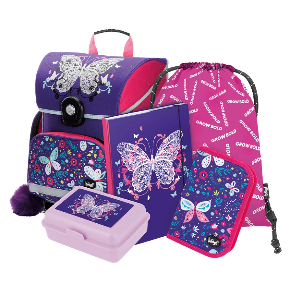 BAAGL SET 5 Motýl: aktovka, penál, sáček, box, desky