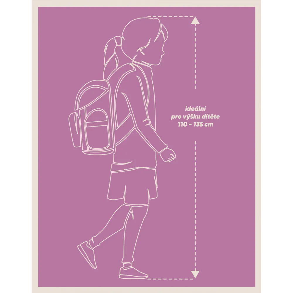 • Posuvný zádový systém BAAGL ADJUSTABLE SYSTEM umožňuje nastavení optimální polohy popruhů vzhledem k výšce ...