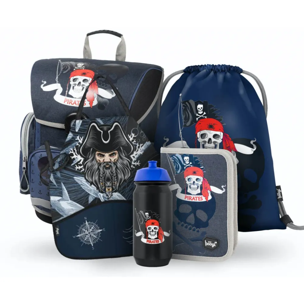 BAAGL SET 5 Piráti: aktovka, penál, sáček, láhev, zástěra