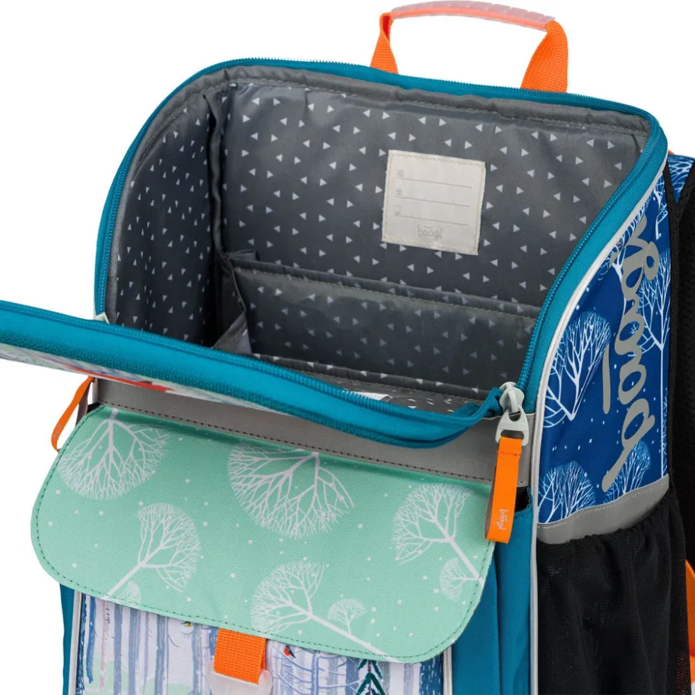 • Uvnitř aktovky je průhledná kapsa s rozvrhem a vnitřní organizér umožňující rovnoměrné rozložení hmotnosti, doplněný gumičkou pro fixaci.