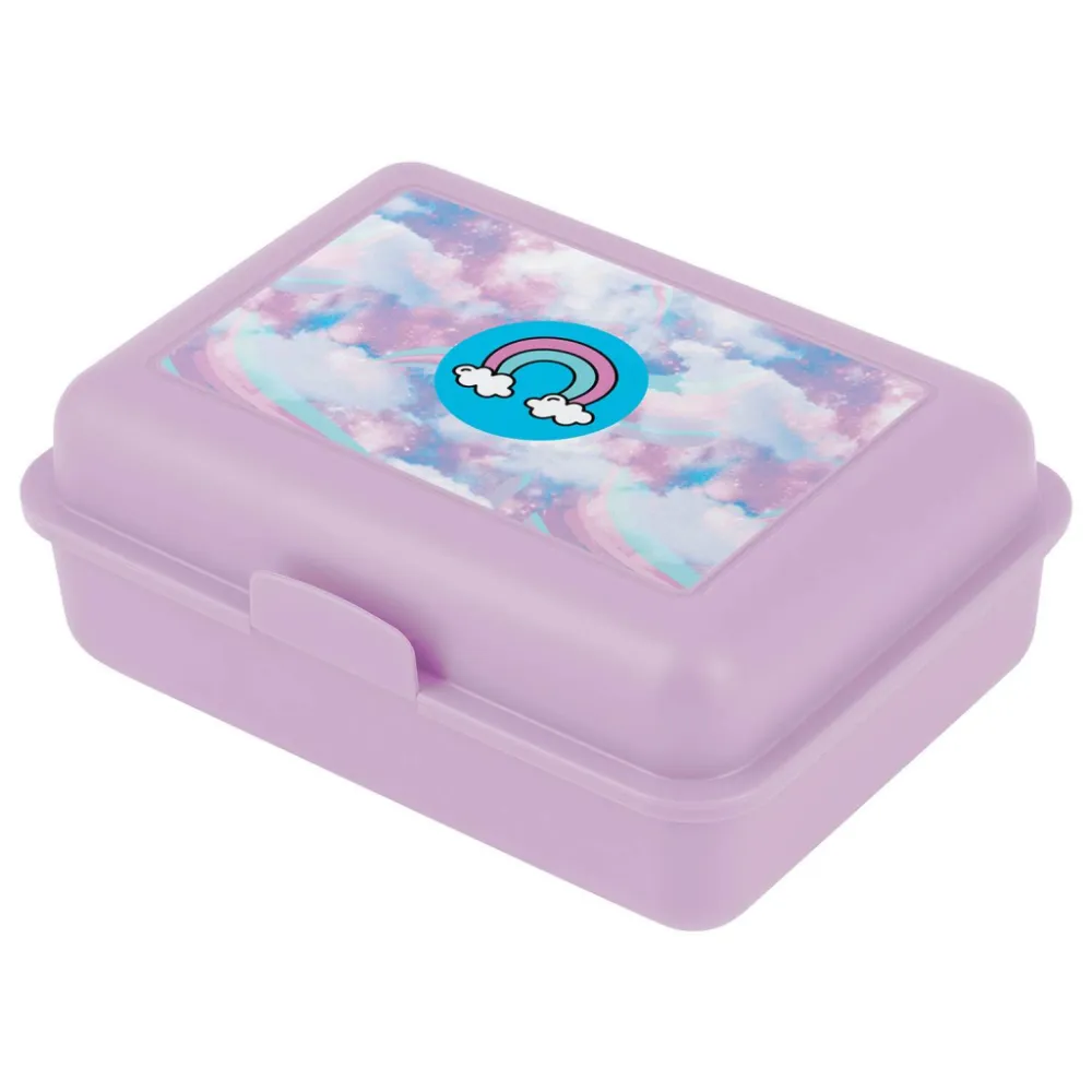 • Plastový box na svačinu v růžové barvě.
