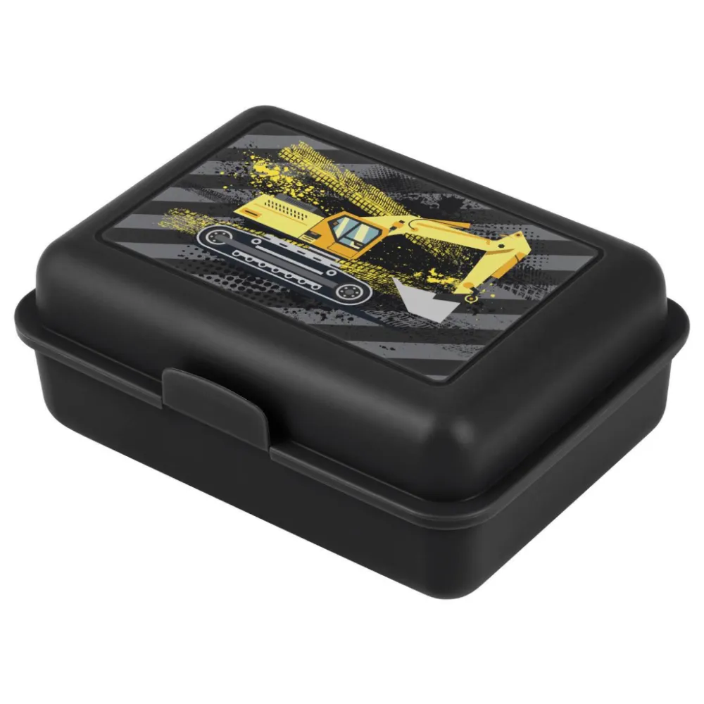 • Plastový box na svačinu v černé barvě s obrázkem bagru.
