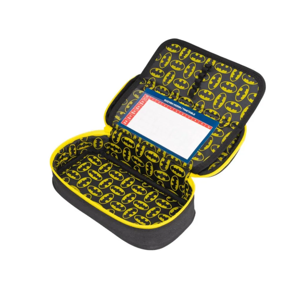 • Pevný penál na zip s dvojitou výklopnou chlopní a s motivem Batmana.