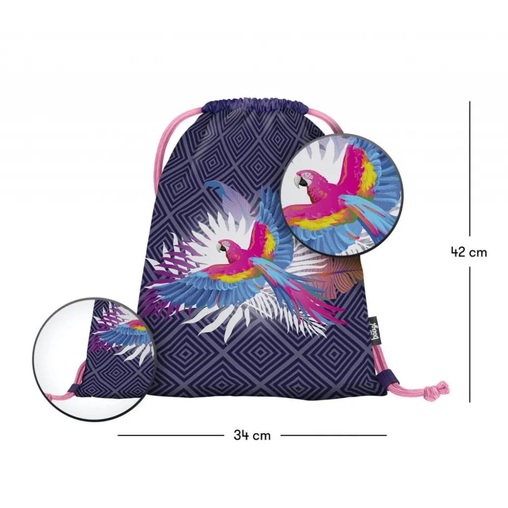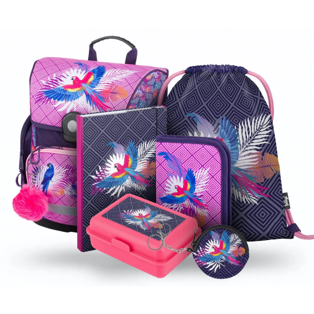 Detailní popis: BAAGL SET 6 Papoušek: aktovka, penál, sáček, desky, box, peněženka
