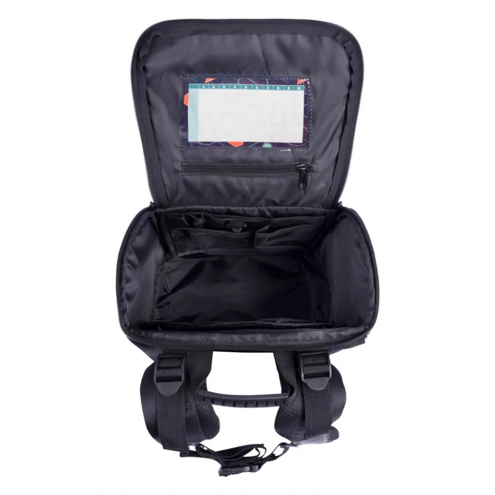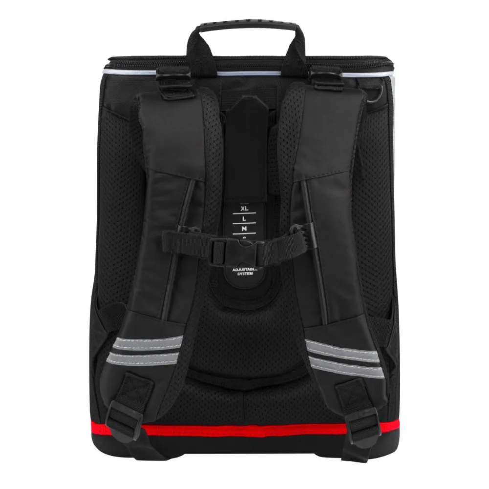 • Ergonomická školní aktovka s vyztuženým tělem, vnitřním organizérem a třemi oddělenými kapsami.