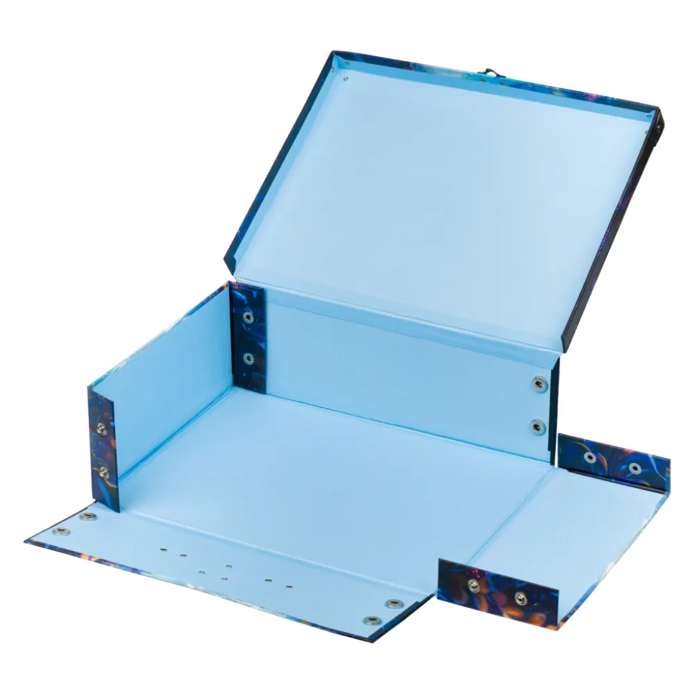 • Díky důmyslnému systému patentek lze kufřík s okovanými rohy snadno složit i rozložit během několika vteřin.