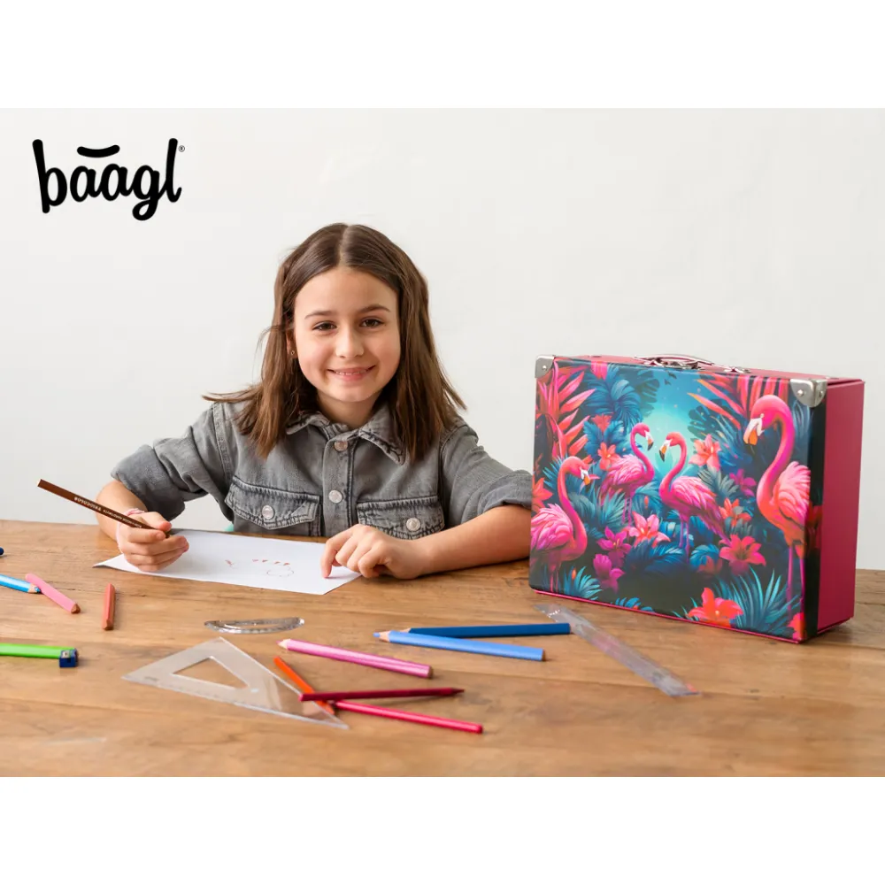 Detailní popis: BAAGL Skládací školní kufřík Plameňáci s kováním