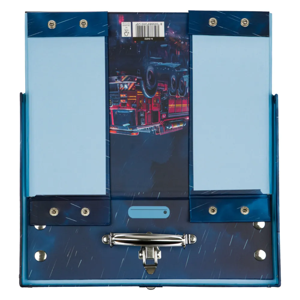Praktický skládací kufřík na výtvarnou výchovu, hračky či drobnosti s motivem záchranářů poskytuje bezpečný prostor pro jejich uložení.