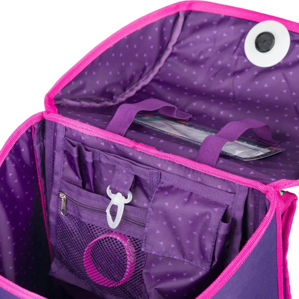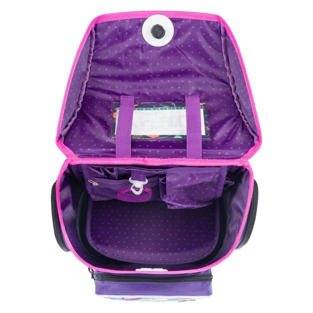 • Uvnitř aktovky je průhledná kapsa s rozvrhem a vnitřní organizér umožňující rovnoměrné rozložení hmotnosti.
