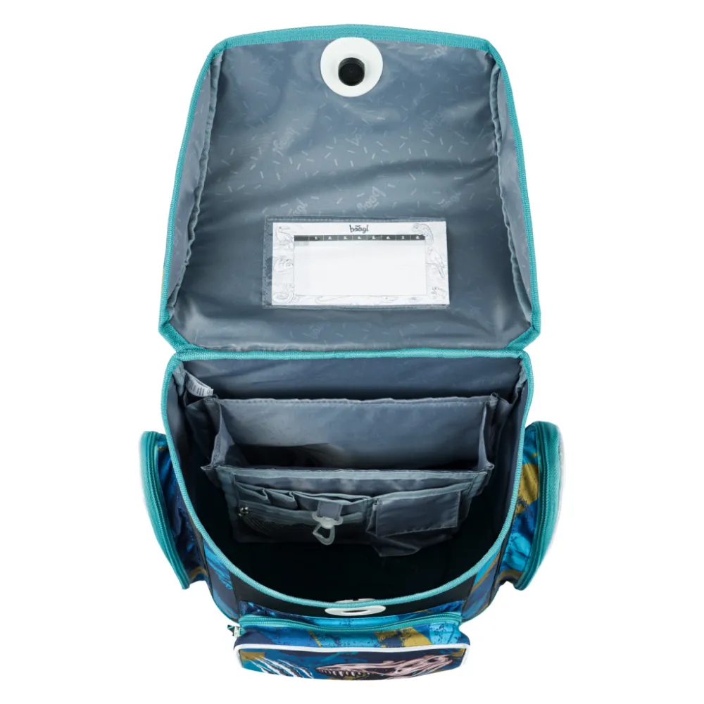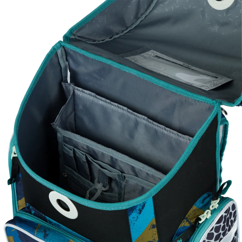 • Uvnitř aktovky je průhledná kapsa s rozvrhem a vnitřní organizér umožňující rovnoměrné rozložení hmotnosti.