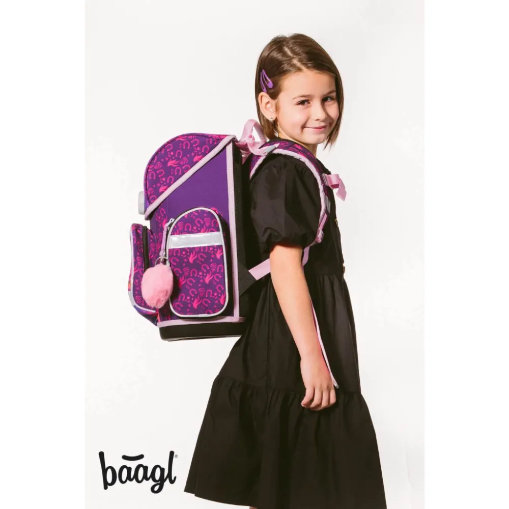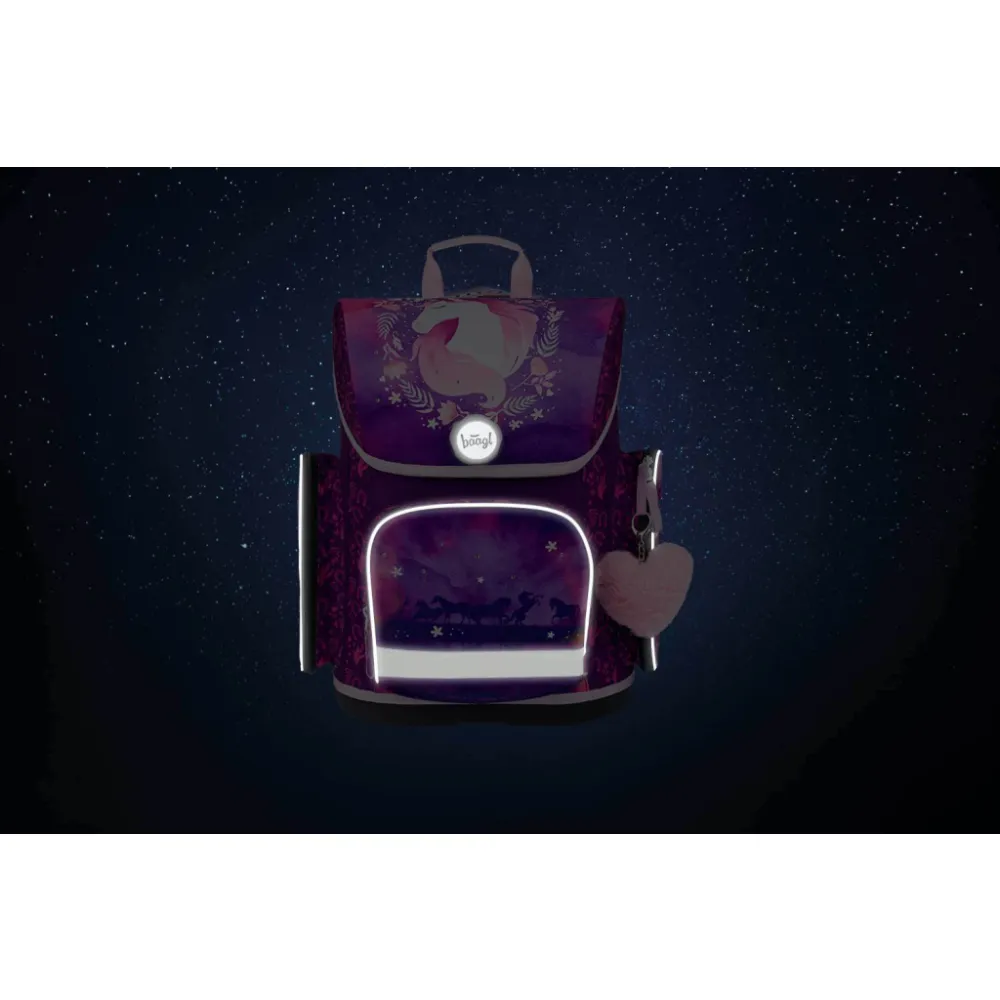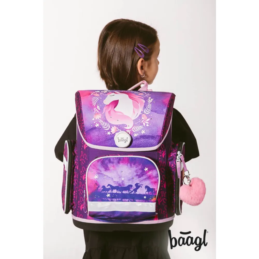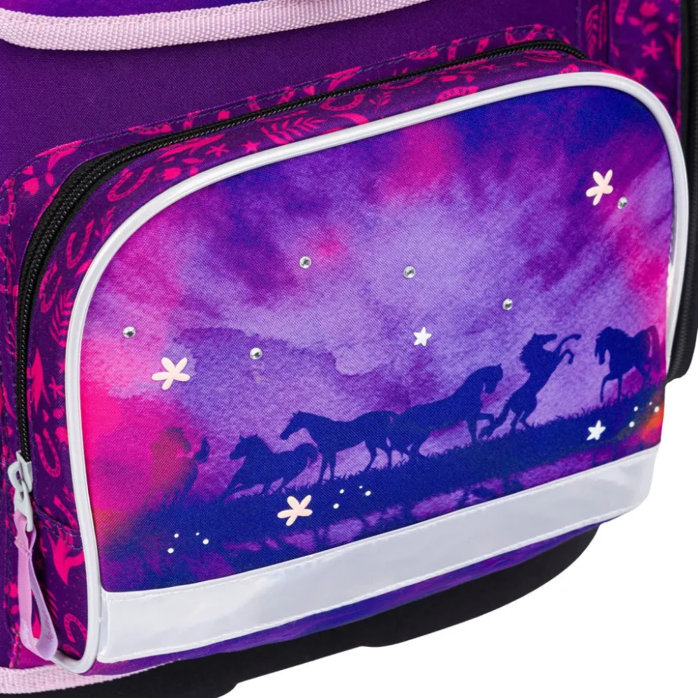 Dívčí fialová aktovka ERGO s motivem koně je vhodná od 1. třídy ZŠ. Unikátní magnetické zapínání Fidlock usnadní prvňáčkům manipulaci.