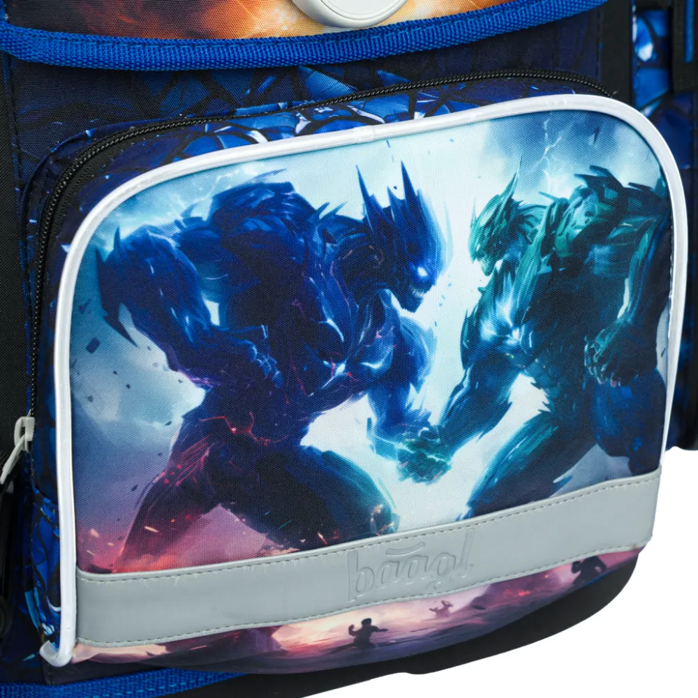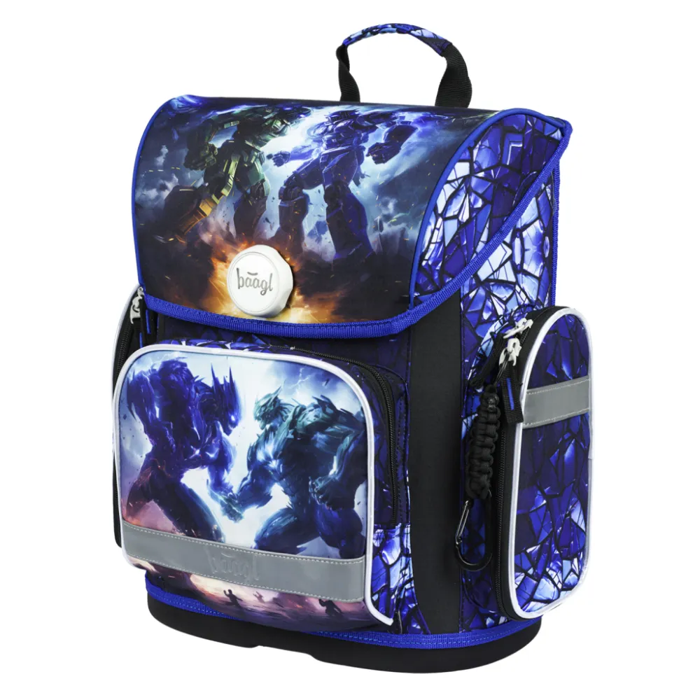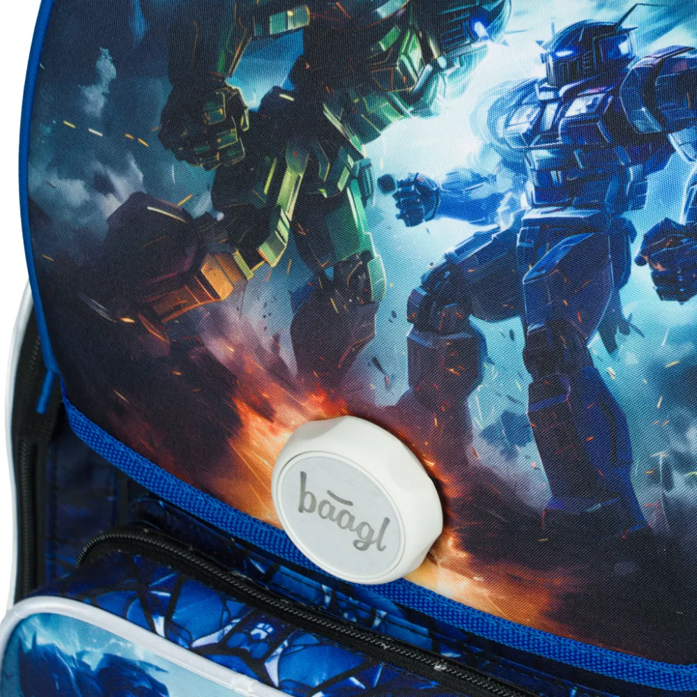 Ergonomická aktovka Ergo Roboti v nadčasovém designu inspirovaném světem počítačových her. Jednoduché otevírání hlavní kapsy pomocí unikátní přezky FIDLOCK umožnuje snadný přístup i těm nejmenším školákům.