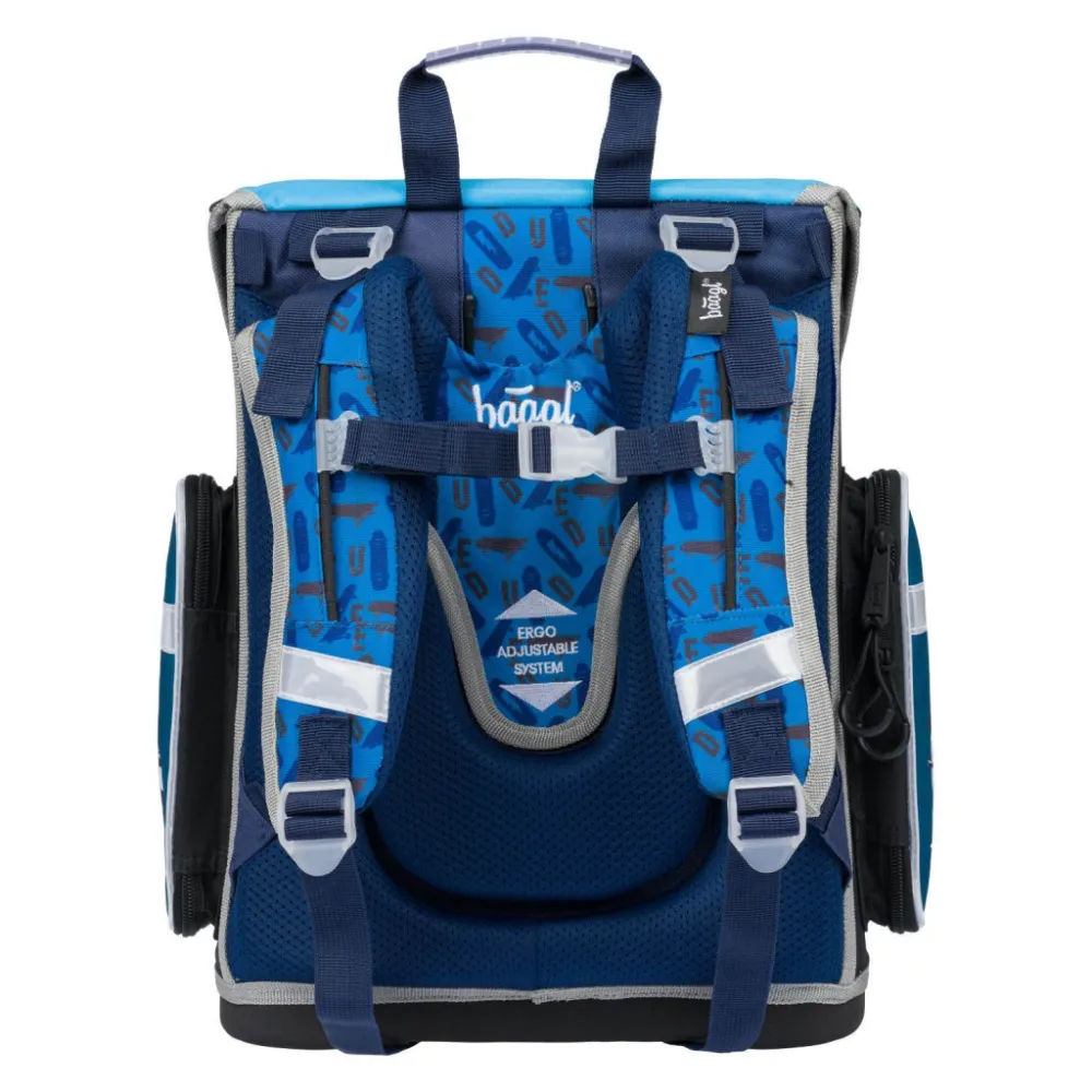 Školní aktovka Ergo Skaterboard v modré barvě. Tato aktovka je vhodná od první třídy základní školy.