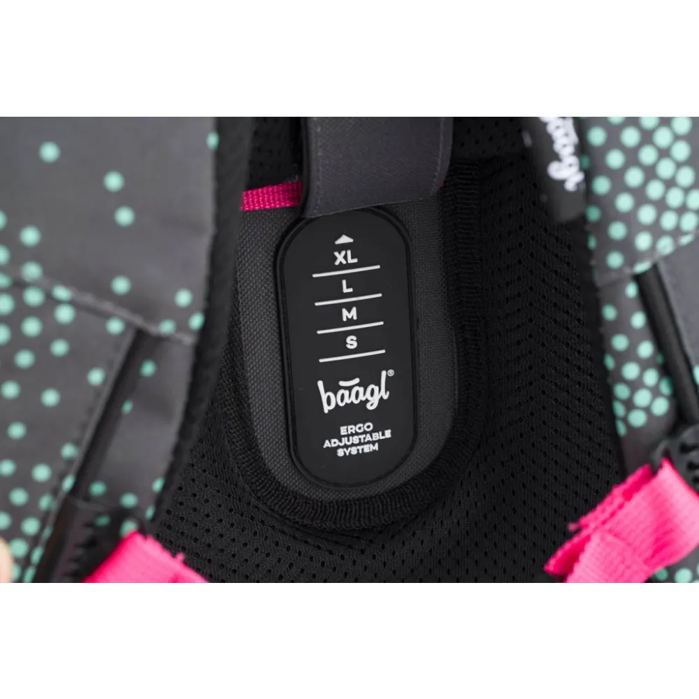• Posuvný zádový systém ERGO ADJUSTABLE SYSTEM umožňuje nastavení optimální polohy popruhů vzhledem k výšce dítěte.