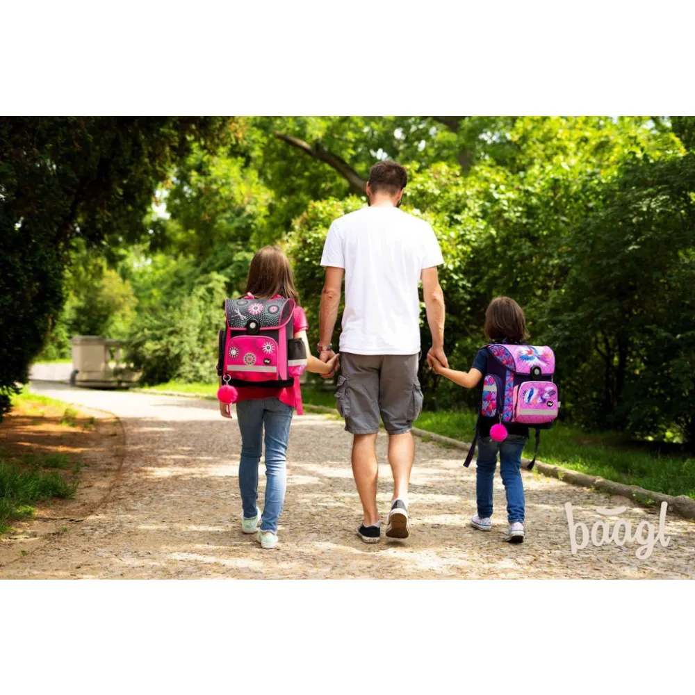 • Školní aktovka s vyztuženým tělem, vnitřním organizérem a třemi oddělenými kapsami a zapínáním na kvalitní přezku.