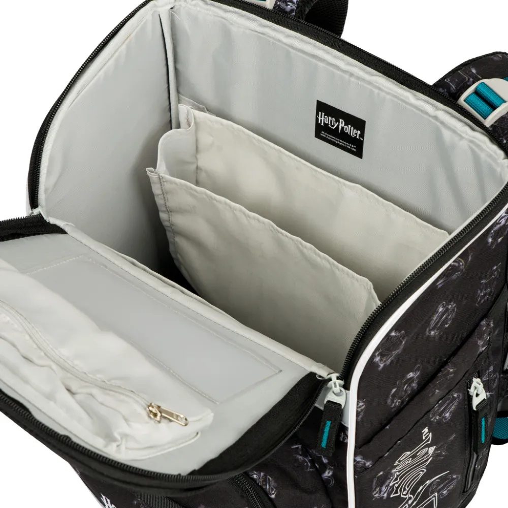 Ergonomická aktovka Zippy Plus s motivy kouzelnické ságy Harry Potter, posuvným zádovým systémem, vyklápěcím víkem a odnímatelnými odznáčky, je ideální volbou pro malé fanoušky magie.