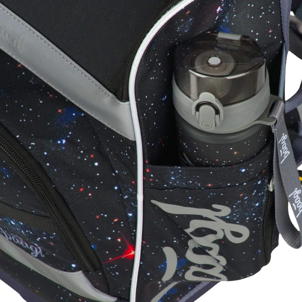 Ergonomická školní aktovka Zippy Plus Pixel Space s vesmírným motivem a odnímatelnými odznáčky, které umožňují měnit vzhled aktovky podle nálady.