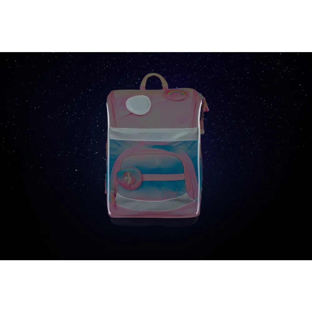 Ergonomická školní aktovka Zippy Plus Rainbow Unicorn s posuvným zádovým systémem, vyklápěcím víkem a odnímatelnými odznáčky, které umožňují měnit její vzhled podle nálady, je vhodná pro děti od 1. třídy ZŠ.