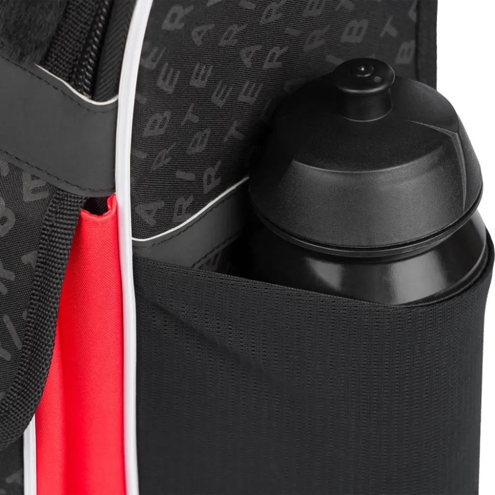 • Boční kapsy z pevné síťoviny, které jsou vhodné pro jednu z našich láhví na pití.