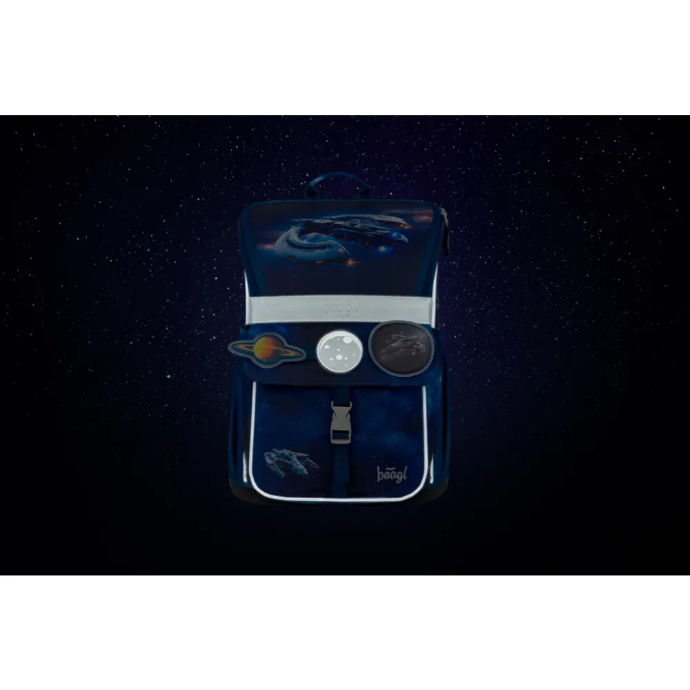 Lehká školní aktovka s motivem vesmírné lodi a posuvným zádovým systémem je ideální pro děti od 1. třídy.